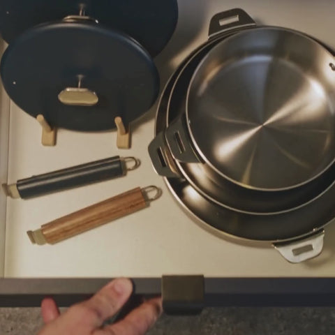 - Adatto a tutti i piani cottura, anche in forno senza maniglie rimovibili
